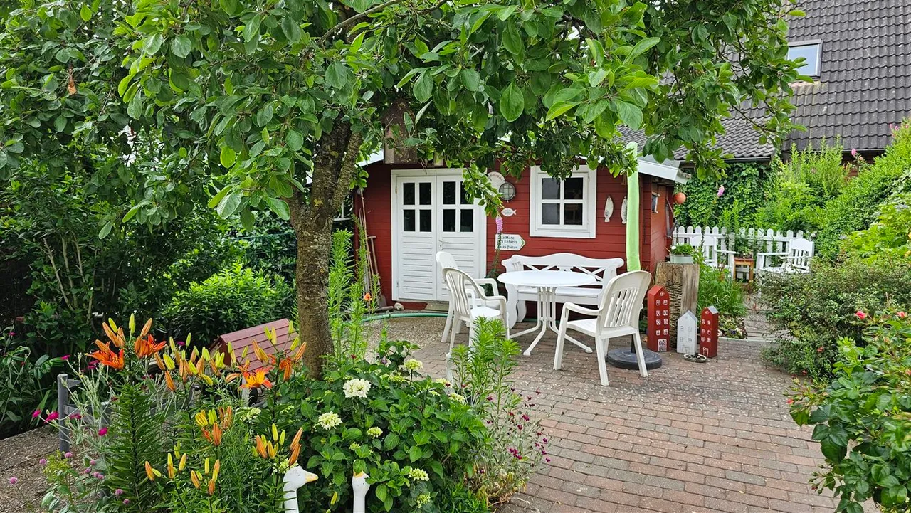 Die große und beheizbare Garage (ca. 9 m x 4 m) mit Satteldach, Nebenraum und Spitzboden und der schön angelegte Garten auf dem ca. 1.062 m² großen Grundstück komplettieren dieses Immobilienangebot in ruhiger und begehrter Feldrandlage von Nieblum.