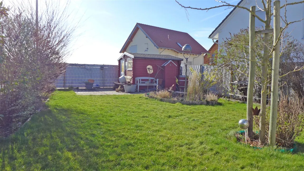 Im eingefriedeten Garten und auf der Terrasse des ca. 513 m² großen Areals, fällt es leicht, die Sonne im rheinhessischen Tafel- und Hügelland zu genießen.