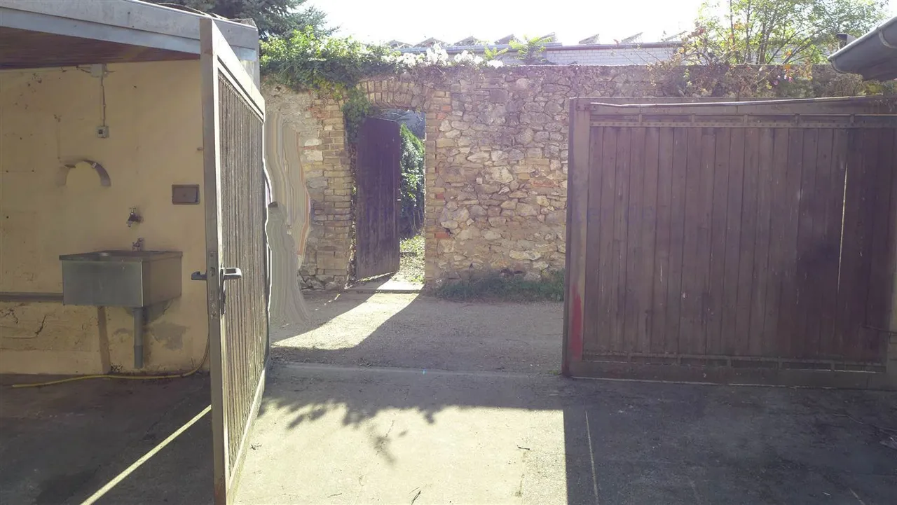 Der Hof befindet sich auf der Rückseite des Wohnhauses. Von hier erreichen Sie auch das auf der gegenüberliegenden Straßenseite das separate Gartengrundstück, welches ebenfalls im Kaufpreis enthalten ist.