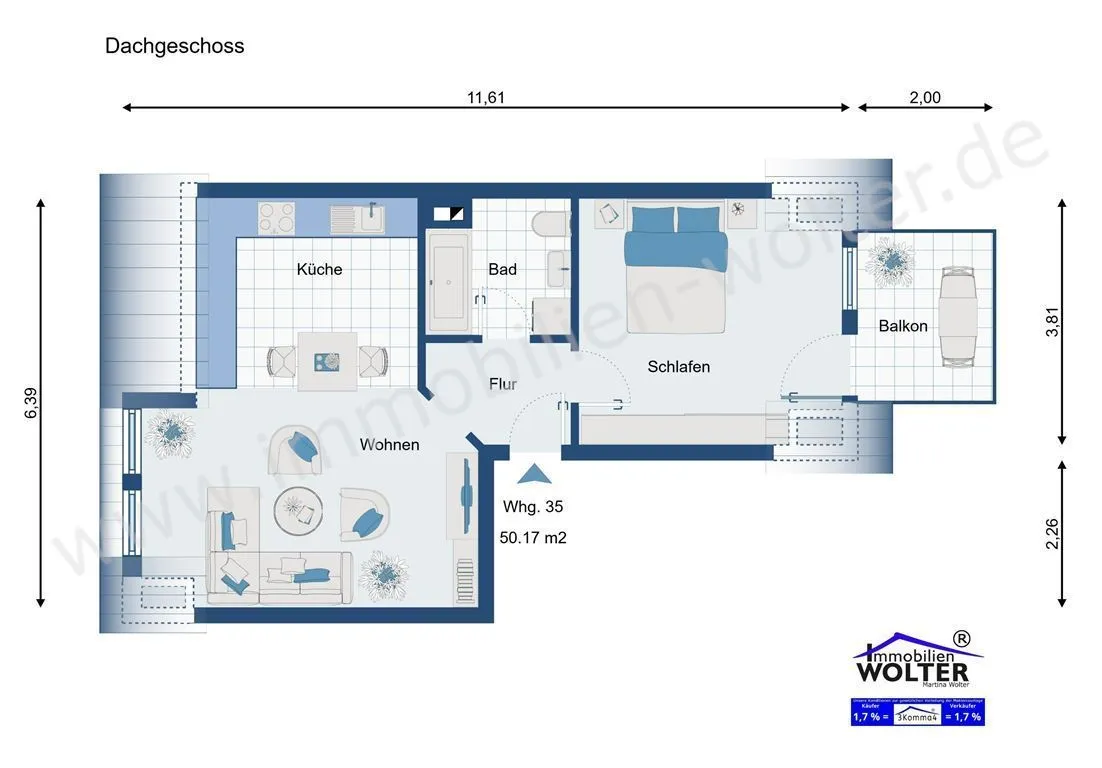 1,7 % Verkäufercourtage und 1,7 % Käufercourtage - www.immobilien-wolter.de