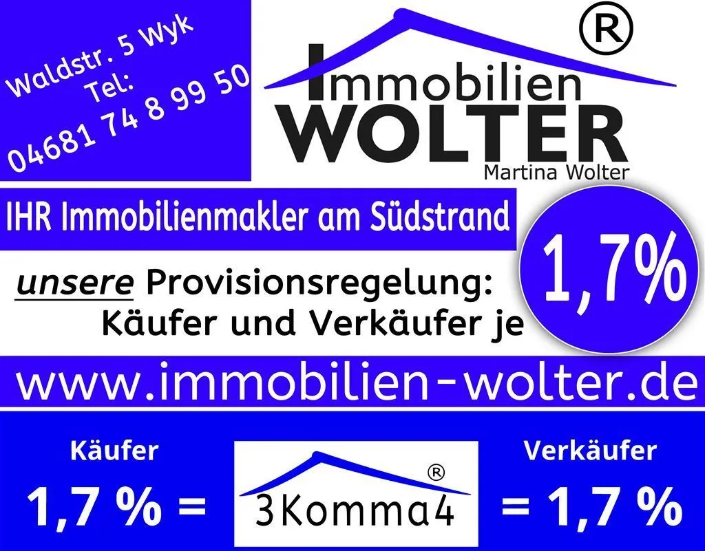 1,7 % Verkäufercourtage und 1,7 % Käufercourtage - www.3Komma4.de