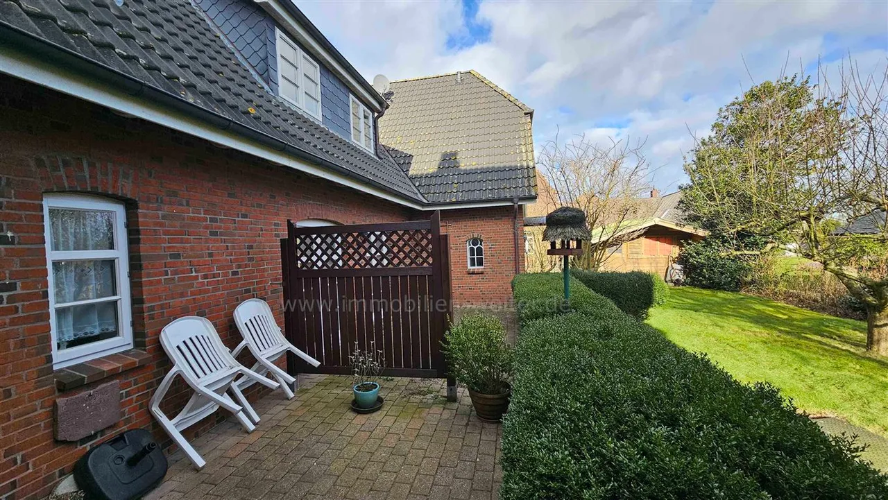 Das charmante Reetdachhaus bietet ca. 130 m² Wohnfläche und umfasst fünf Zimmer, zwei Küchen, zwei Tageslichtbäder, mehrere Abstellräume sowie eine Terrasse.